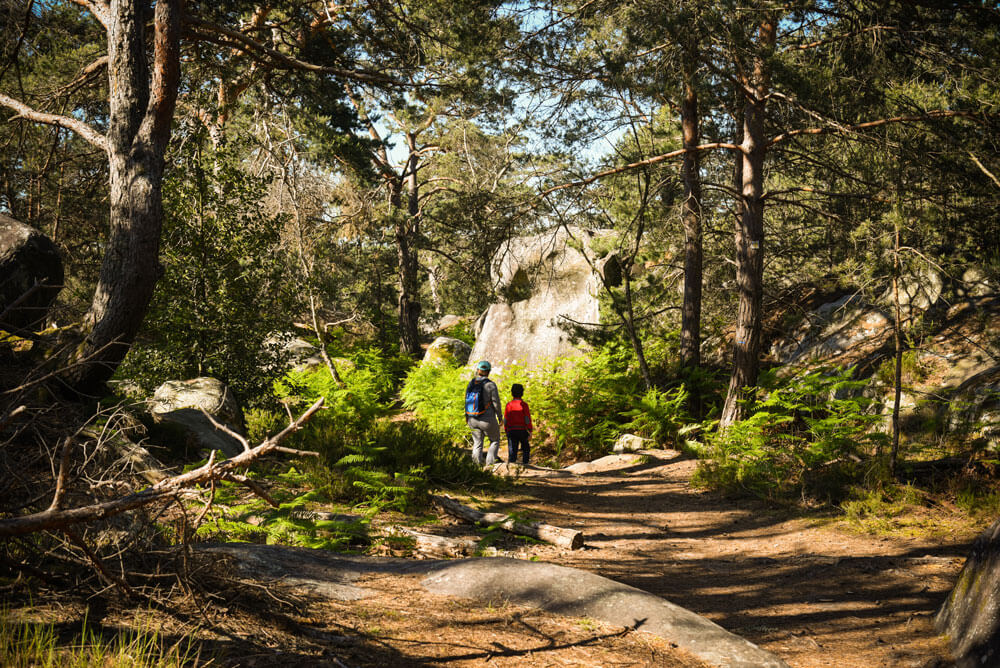 さらに、この森は世界的なボルダリングの名所としても知られています。大小さまざまな岩が点在しており、クライミング愛好者にとっては挑戦の場となっています。一方で、のんびりとした散策を楽しみたい方には、森の中を走る整備された遊歩道が用意されており、四季折々の自然を感じながら心を落ち着かせることができます。